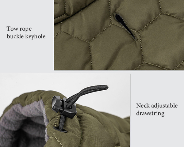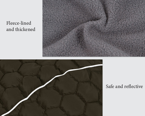 Thick insulated fabric keeps your dog warm, with an adjustable drawstring or Velcro neck guard for a snug, comfortable fit.