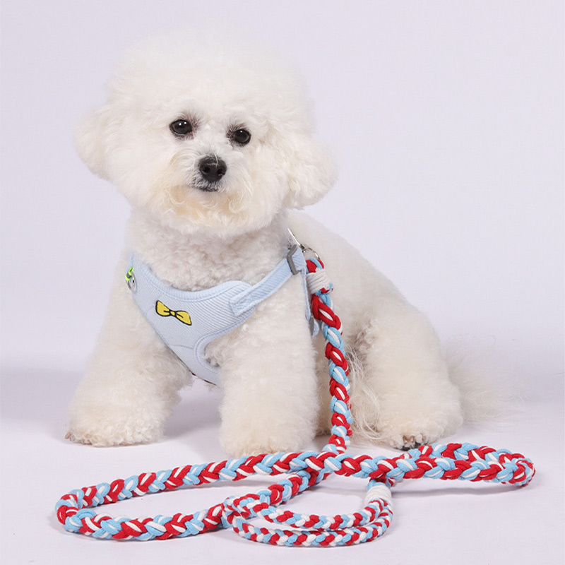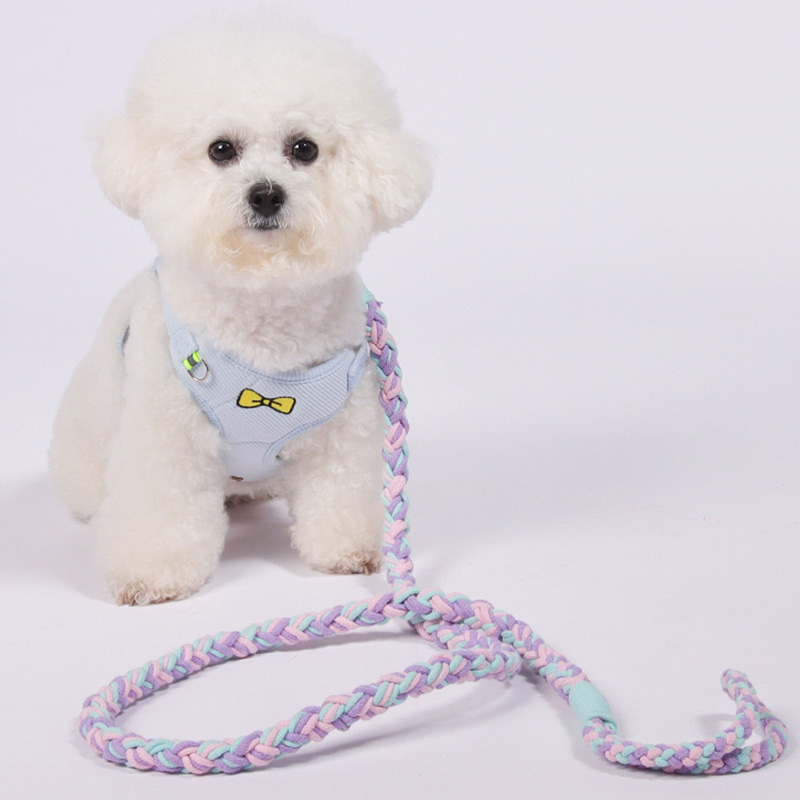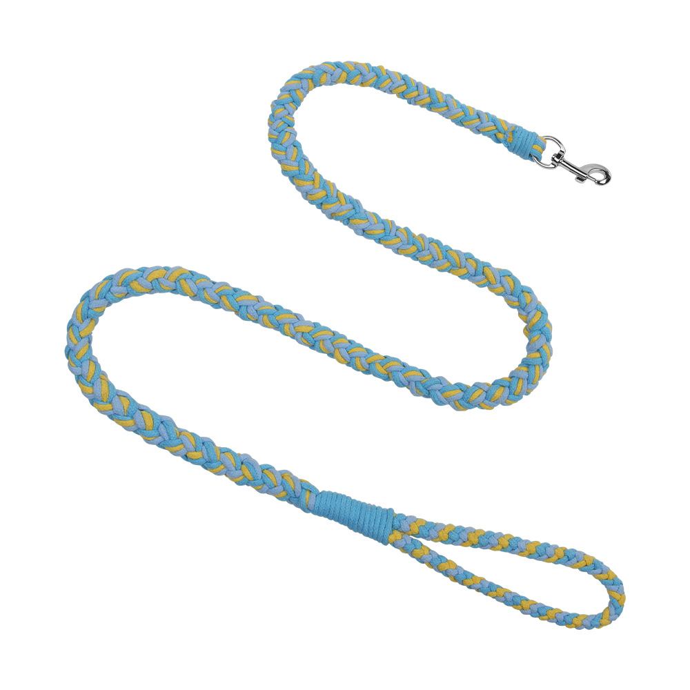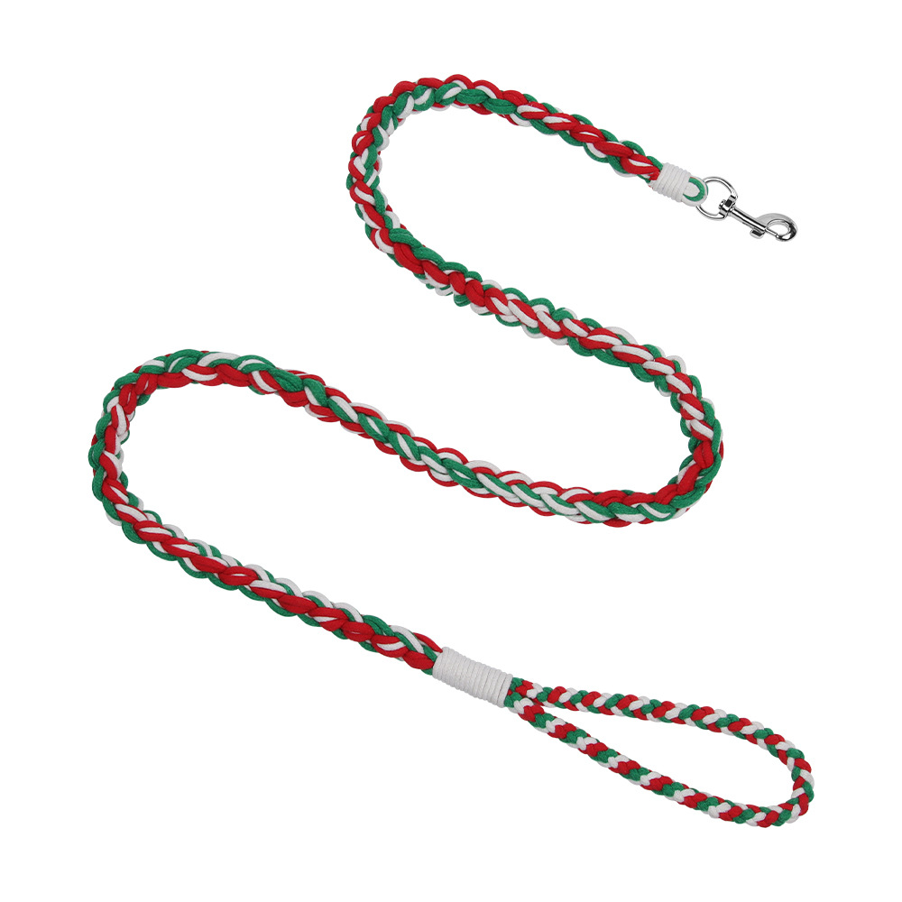 This braided dog leash is handmade with durable fabric for strength and comfort. Featuring a colorful twisted design, it provides reliable control for daily walks and outdoor activities with your dog.