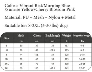 Size Chart - Various sizes are available, suitable for dogs of different sizes.