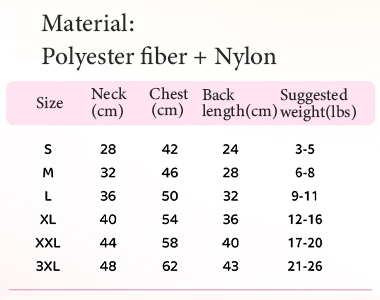 Size Chart - Various sizes are available, suitable for dogs of different sizes.