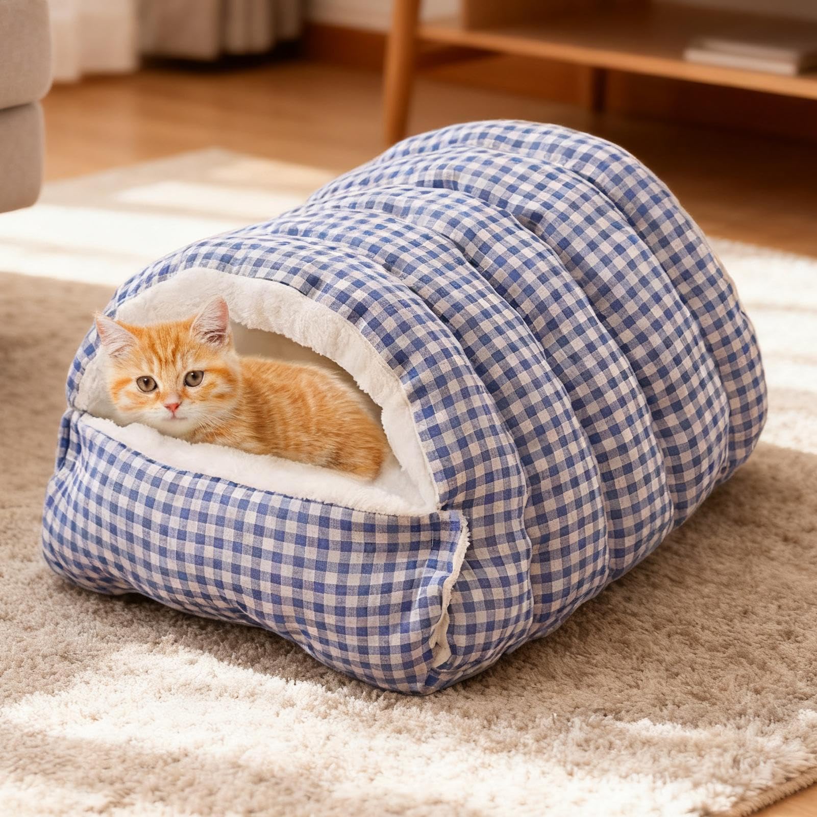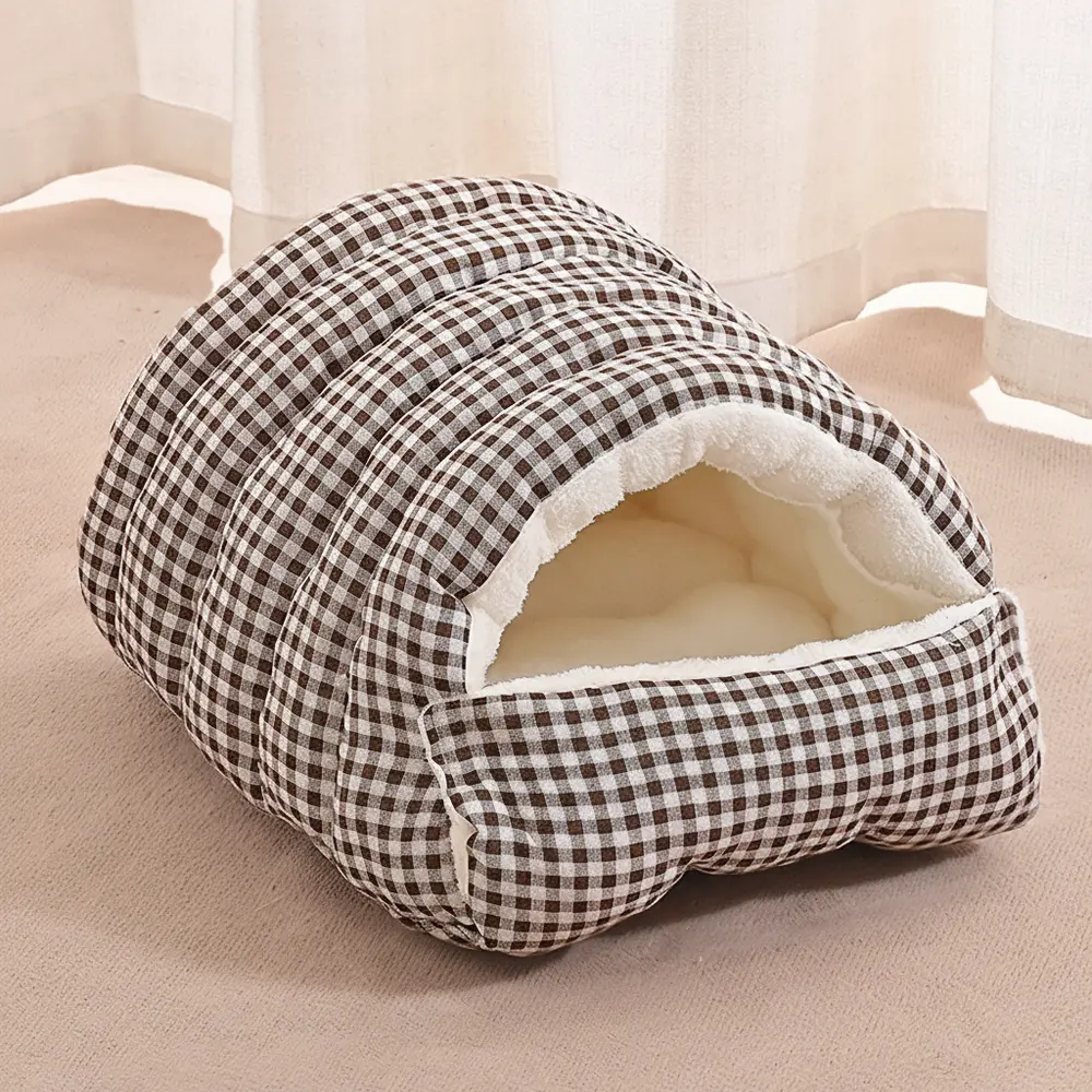 Keep your cat cozy, comfortable, and secure all winter with this warm cat bed, featuring a plush enclosed design that provides ultimate warmth, soft support, and a safe retreat for your furry friend.